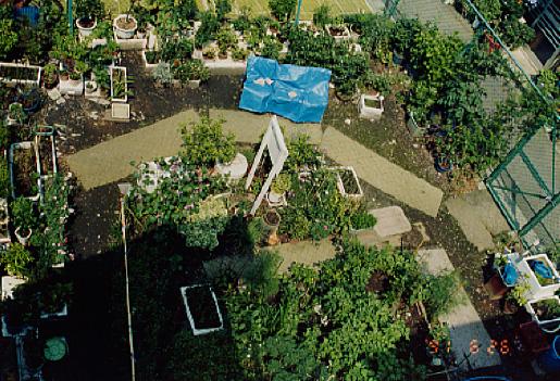彼が東京都の再開発事務所に行って、「これから夏になると草は生えるし、蚊はわくし、困るから、俺らがあんたたちの代わりに草刈りをしてあげるから、カギを貸しなさい」と言ったんですね。で、借りてきた鍵で、南京錠を開けて、別の錠に付け替えて、その合鍵を路地のみんなに配って、みんなで耕してできたのが、このお花畑です。