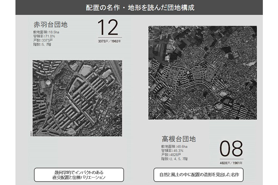 - 次がこの二つ。赤羽台団地と高根台団地です。両方とも地形を読んだ団地構成、非常に素晴らしい配置計画の団地です。