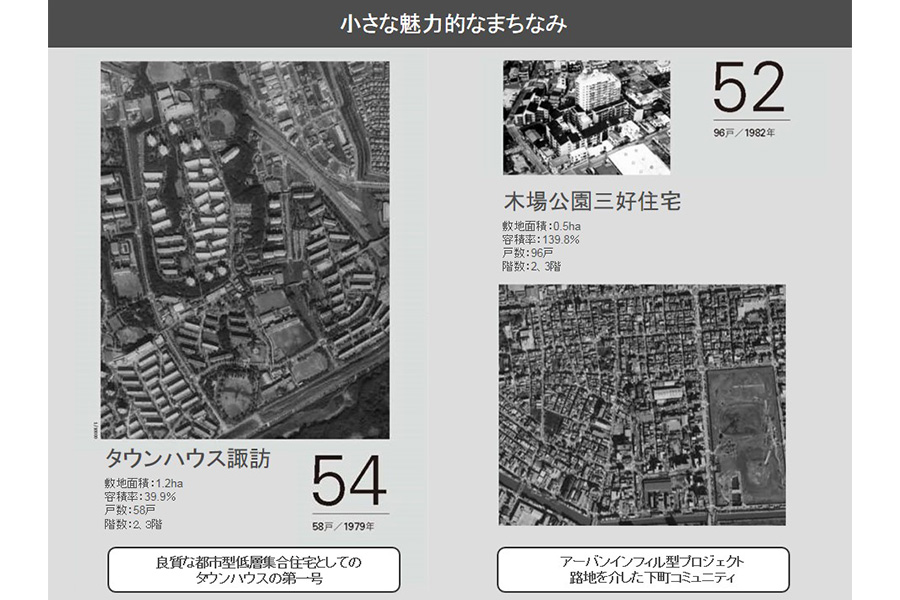 次は非常に小さな魅力的な街並みとして、タウンハウス諏訪と木場公園三好住宅の2つを取りあげています。
