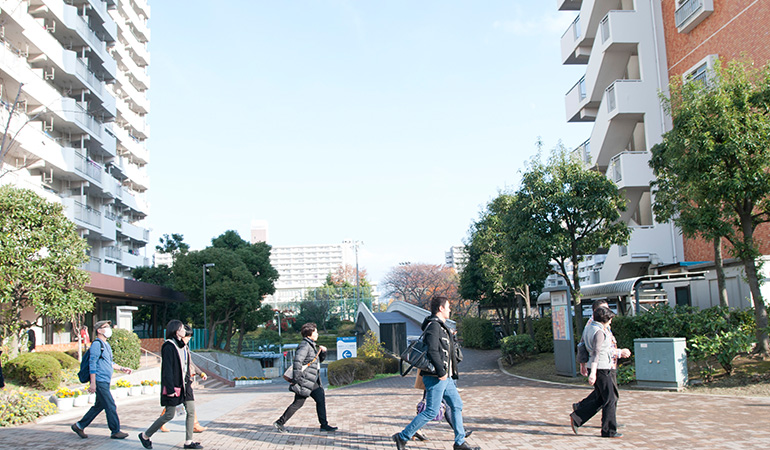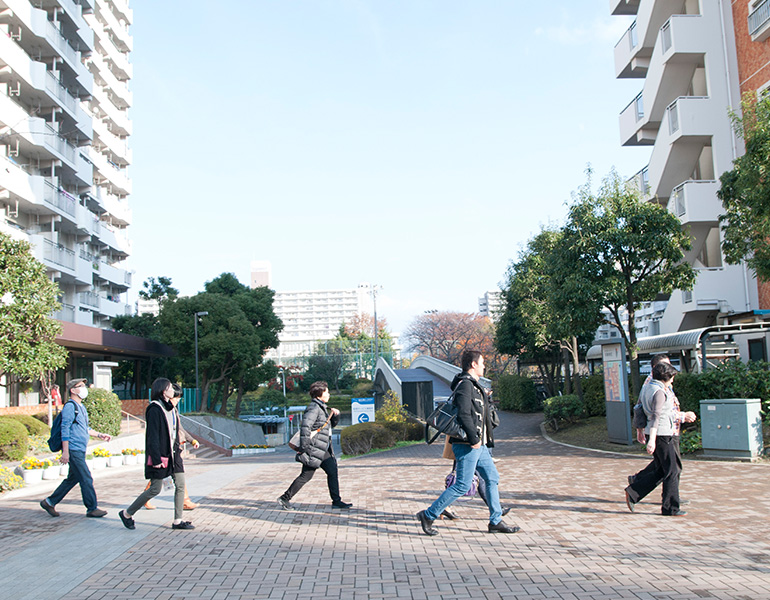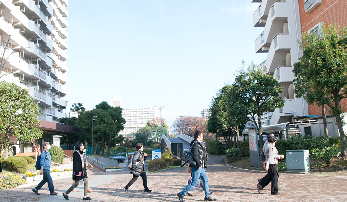 - みなさん、こんにちは。今日ツアーのガイドをします、土谷です。MUJI×UR団地リノベーションプロジェクトでは、昨年から様々なトークイベントを開催してきました。関西では大学の先生を呼んで、今団地をどう考え、未来につなげるか考えていこうというトークイベントをやってきました。そして昨年から東京でも「団地再生リレートーク」を実施しています。MUJIは、URと一緒に団地の住戸をリノベーションするだけでなく、団地そのものをどう魅力的にするのか、視野を広げて考えていこうと情報発信を行い、様々なプロジェクトをやっています。特に大阪では団地コミュニティに関わるイベントを仕掛けたりもしてきました。そして昨年、東京ではバスツアーを開催し大変好評でしたが、今回は少し規模を小さくしてリレートーク現地版という形で、団地ハイキングという企画になりました。ゲストとして明治大学の門脇先生にお越しいただいています。門脇先生は建築構法を専門にされています。そして団地についても大変詳しい方です。門脇先生、どうぞよろしくお願いいたします。