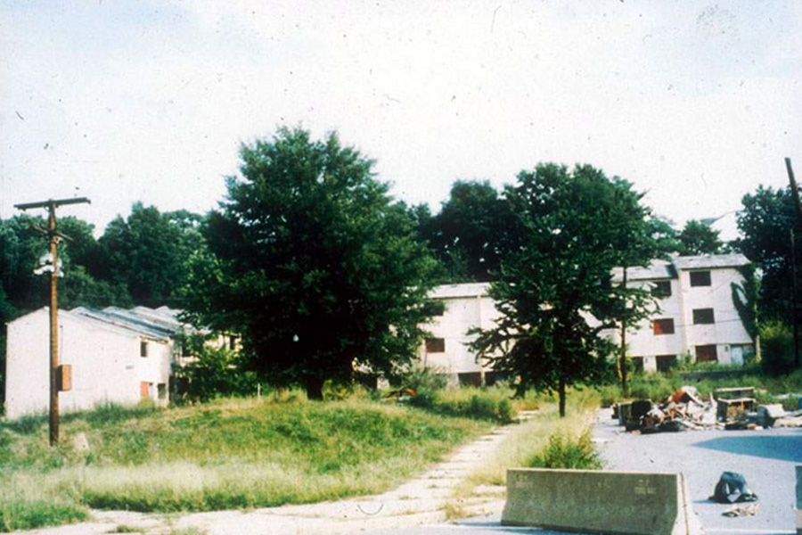 - 調査結果を今からお話しますけれども、この研究を1990年代半ばに始めたところで、もう一度各国を訪ねて行ったことがあります。アメリカに行ったときに、南の方のほぼ黒人しか住んでいないところに行ったのですが、この方向に自転車くらいのスピードで走っていたのですが、5分~10分くらいずっとこんな感じで続きます。よく見たら全部窓がない。窓がないどころか窓のサッシもなにもない。屋根も壊れていて、一切人が住んでない。これはアバンドンド [abandoned]という「捨てられた住宅地」。つまり団地再生をしなければ、最後はこんなことになるということをアメリカは身をもって教えてくれました。