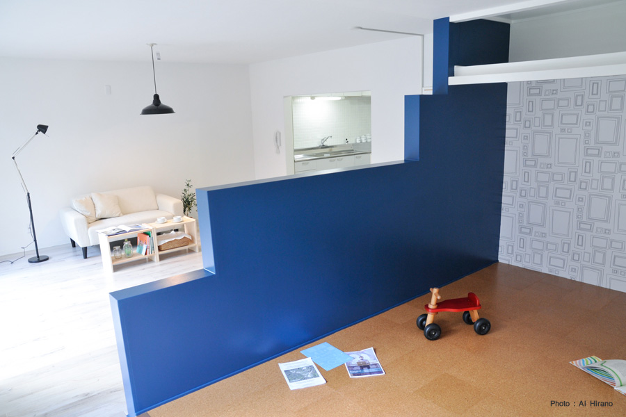- ここから、竹の里団地のほうの事例です。これは手前がプレイルームで、向こうに居間があって、それで、子供部屋といっても居間とかなり開放的につながるという案です。