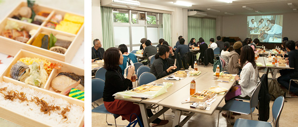 0分程で高島平団地へ到着。まずは集会所にてランチです。ランチを取りながら、昔の団地暮らしの様子が分かる「団地日和」(協力:UR都市機構)のDVD映像を見ました。