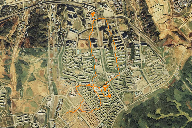 - 住棟は丘にあり、幹線道路は谷間を走っています。谷の両側の斜面に緑地が残されています。このように丘陵の地形的な特徴が生かされて多摩ニュータウンの景観ができています。地形による土地利用の違いは日常生活にも関わっています。たとえば住棟のある丘の上には自動販売機もない。コーラ買うにも谷に降りなければいけないのです。谷に降りるとコンビニがあり、それはあまり麗しい風景ではないけれど、便利ではあります。様々な要素が混在しているのが多摩ニュータウンの特徴です。
