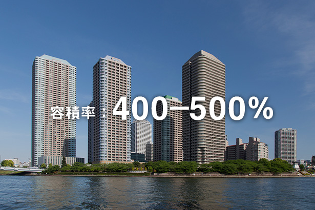 さらに、90年以降は超高層集合住宅が建つようになります。容積率は400%から500%。今日ご覧になった団地の5倍以上も高密です。