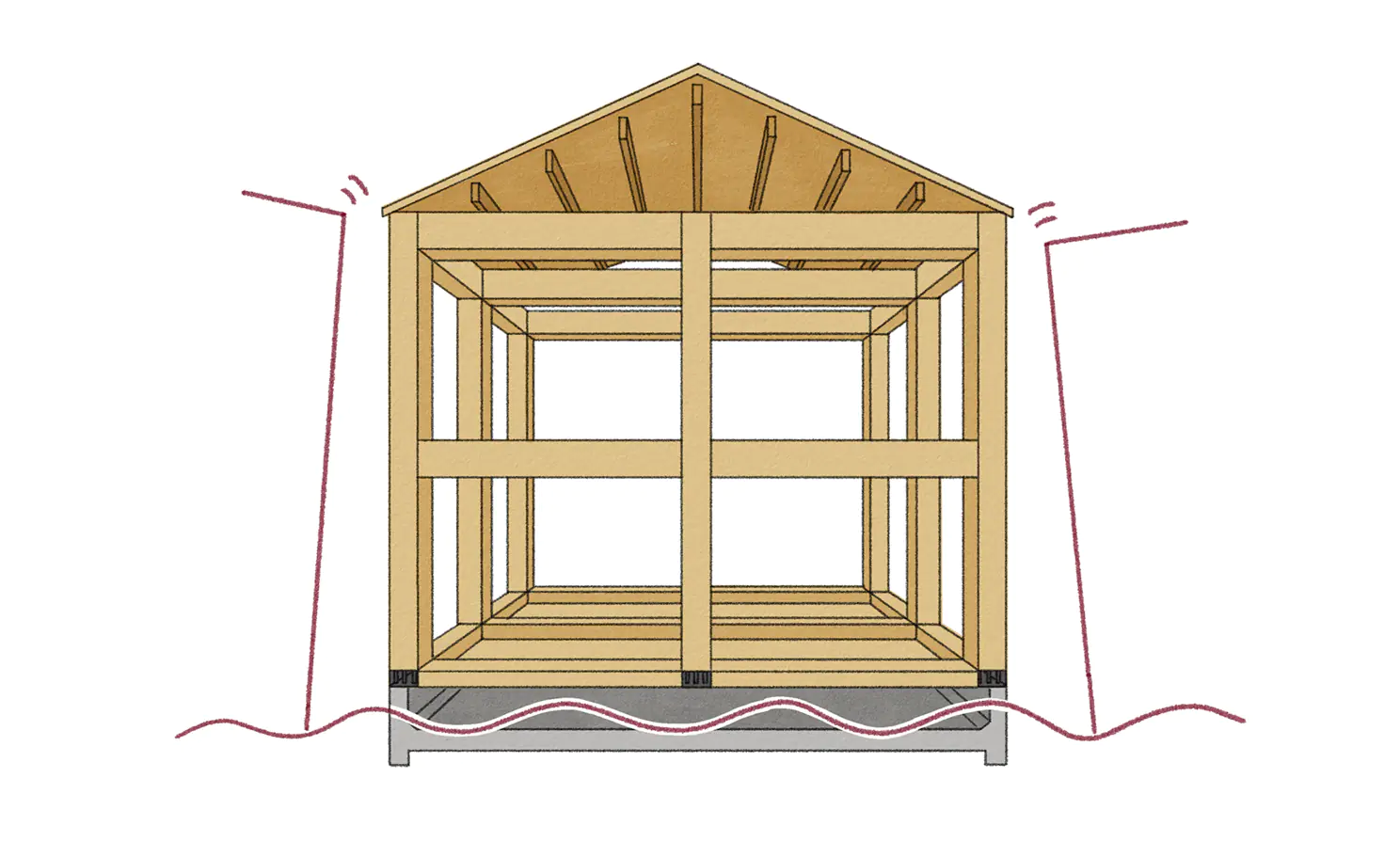 建物の耐震性を見定める基準「耐震等級」は3つのランクがあり、無印良品の家は最高等級である耐震等級3の基準をクリアしています。さらに耐震性を検証する方法として一般的に用いられる「住宅性能表示計算」よりもより細かな「構造計算」を行うことで、安全性を確認しています。