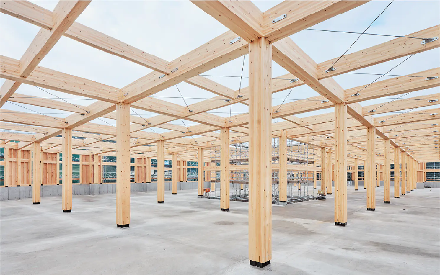 無印良品の家の骨組みは、ビルなどの大規模な建物と同様に、一棟一棟構造強度の計算を実施しています。高強度の集成材による柱と梁を、丈夫な金物でしっかりと接合する独自の「SE構法」を採用することによって、地震に強く、永く住まいを支えつづける頑強な骨組みを実現。東日本大震災や阪神淡路大震災クラスの大地震でも、倒壊することはありません。