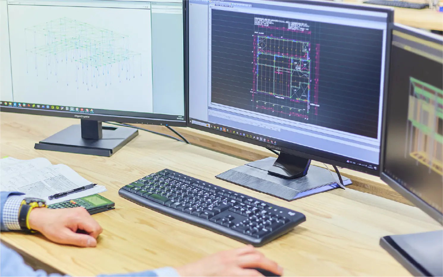 独自の計算方法で部材1本、接合部1カ所ごとを細かく解析し、客観的なデータに基づいて一棟ずつの安全性を事前に確認しています。