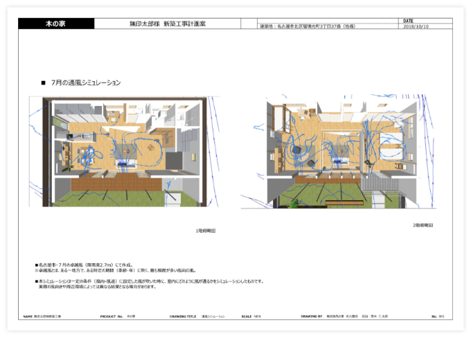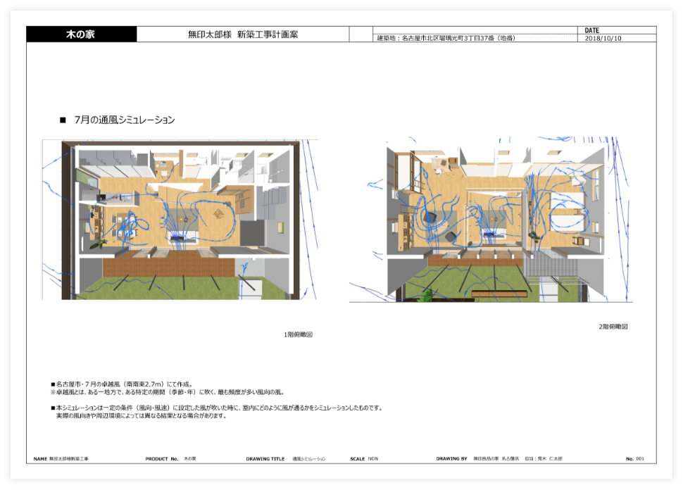 無印良品の「土地探しサービス」では、実際に建てる家のプランを使って間取りや通風といった各種シミュレーションを行うことで、お客さまにとって良い土地なのかを検討することが可能です。