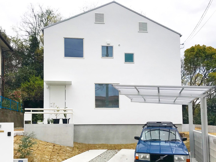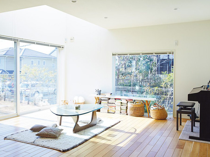 憧れは北欧で訪ねた家具作家フィン・ユールの真っ白な家。夫の憧れは、サザエさんのエンディングに出てくるような三角屋根の家。重なる部分に「窓の家」がありました。長女の誕生を機に、横浜の賃貸マンションから湘南逗子へ転居を計画。一年かけて角地で庭の広い、理想の土地を探し当てました。近くには鎌倉時代の遺跡もあるんですよ。日向の庭には芝が根付き、長女はここから小学校に通っています。── ご入居者より