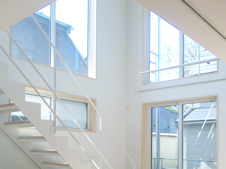 ここまで空間のバランスが良いと、部屋に置くものを選ぶのも慎重になり、ちゃんと計算して飾ろうと思うようになりますね。漆喰の空間で使っていた家具も驚くほど自然と馴染みました。そして庭。三十坪でも開放感抜群の「窓の家」でなければ庭を削って家を広くしようとしたかもしれません。住宅が密接するこの土地でも、大きな吹抜けがあるので、広く感じます。── ご入居者より
