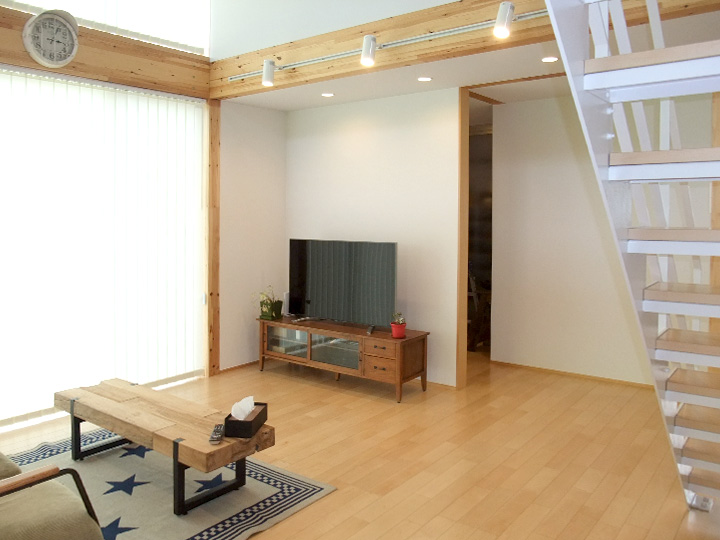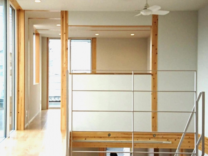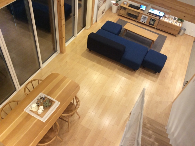 はじめ、こんな開放的な家での暮らしは難しいと思いました。どんな人が建てるんだろうと。でも実際に木の質感を見て一目ですべてを気に入ってしまった。「趣味は掃除機」というほど整頓好きの妻も大賛成。家を建てるのは先のことだと思っていたのに半年後に衝動買いです。心地よい風が通り抜ける、吹抜けの二階を将来どうするかはまだ決めていません。「木の家」ならどのようにでもなると思っているので。── ご入居者より