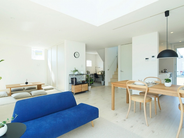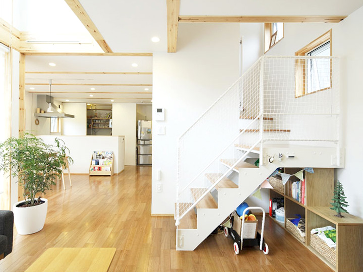 私の育った家には、庭に続く南向きの窓があって、自分の家もそうしたいと思っていました。主人を説得して「家づくり講座」に行ったのも、長男の誕生がきっかけ。育った家から子どもが得るものは大きいと思いますから。今ではウェブで雑貨店をしています。いつか家で店を開くために、一階に空っぽの空間を設けました。この家は、子どもの感性にも家族の未来にも奥行きを与えてくれているんです。── ご入居者より