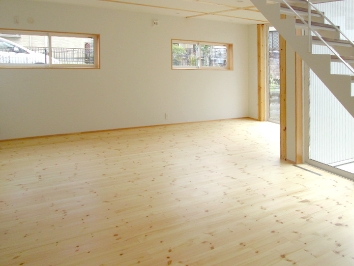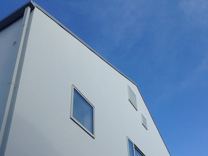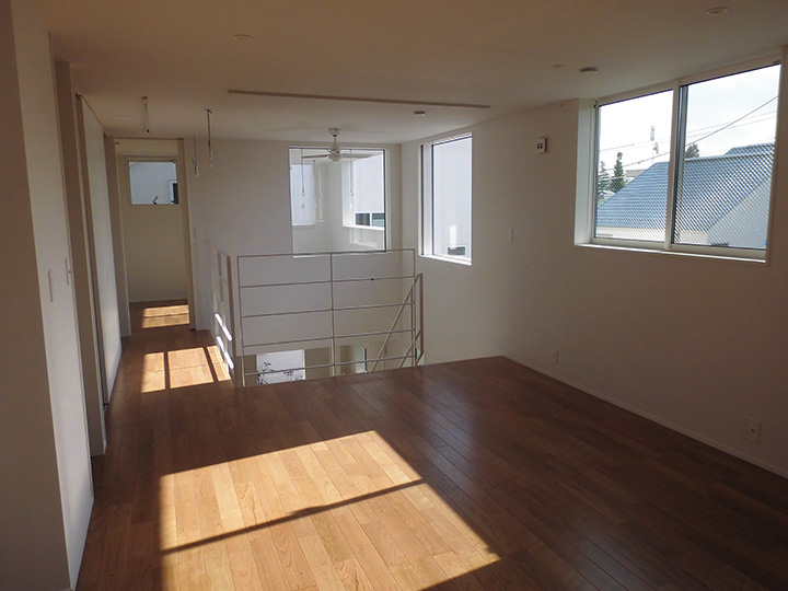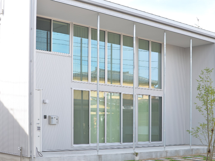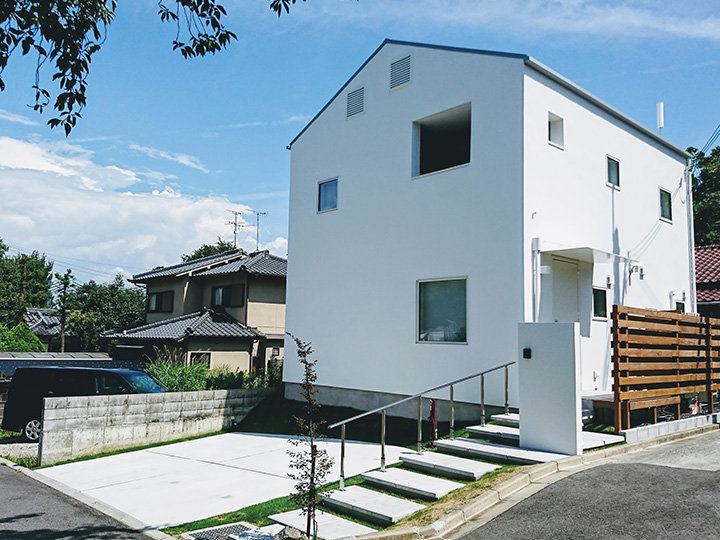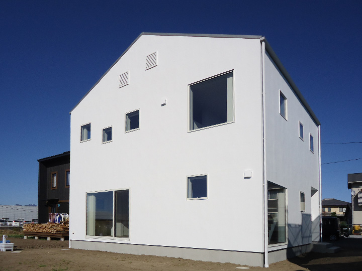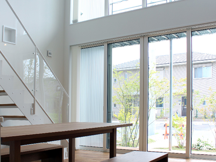 コレクションのカラフルなソフビ人形もマッチした、暮らしながら家族の色に染めることができる、真っ白なキャンバスのような家です。空間を上手に割り振り、家の中に仕事場を設け、職住一体にしました。間取りを自由に決められるから、暮らしの個性も出しやすく、将来、土間の仕事場も倉庫にするかもしれません。窓からの景色も、二人で話し合いながら、一年半かけてつくりました。「窓の家」には自由に変えていく楽しさがあります。── ご入居者より