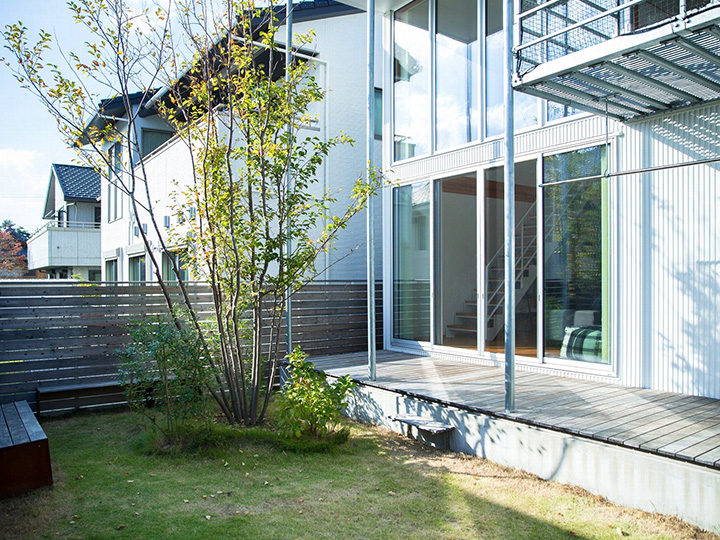 憧れは北欧で訪ねた家具作家フィン・ユールの真っ白な家。夫の憧れは、サザエさんのエンディングに出てくるような三角屋根の家。重なる部分に「窓の家」がありました。長女の誕生を機に、横浜の賃貸マンションから湘南逗子へ転居を計画。一年かけて角地で庭の広い、理想の土地を探し当てました。近くには鎌倉時代の遺跡もあるんですよ。日向の庭には芝が根付き、長女はここから小学校に通っています。── ご入居者より