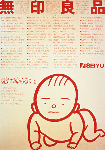 「パッケージに古紙を利用する」と田中一光さんがアイディアを出した段階で、無印の大筋のコンセプトは固まり、小池一子さんの「愛は飾らない」のコピーが方向を明確にしてくれた。青山に押しかけたたくさんのお客様が、背中を押してくれた。