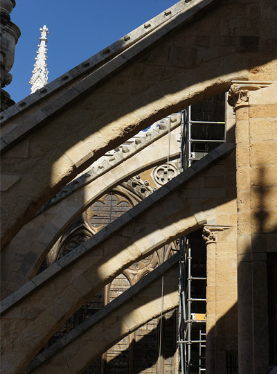 そこで考案されたのが、フライング・バットレスによるアーチ状の外付け梁です。