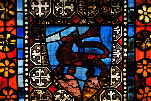 文字の読めない人たちへ聖書の内容を描いたステンドグラスは、