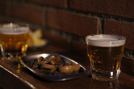 親父はグラスとキノコの載ったお皿をドンッと僕の前におきます。