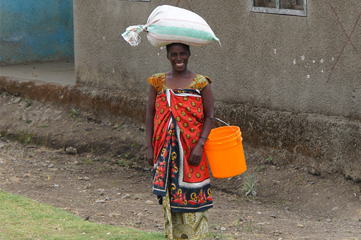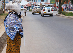 カンガを畳んで頭と運搬物の間に挟むクッションとしての使い方も出来ます。