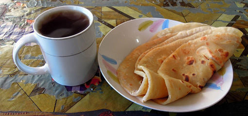 薄焼きパンのチャパティと香辛料を加えたスパイシーなチャイは