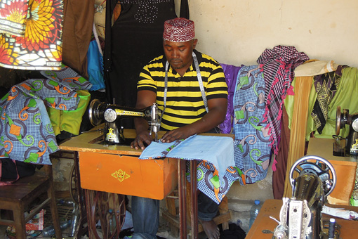 タンザニアの地方都市のメインストリートで営む仕立て屋から