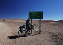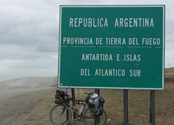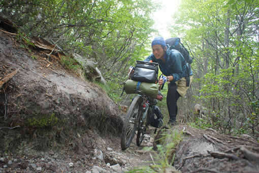 パタゴニア地方では途中から獣道のようなトレイルを、自転車を押したり担いだり、