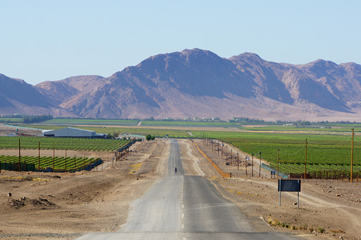 川沿いは、灌漑によるぶどう畑の緑が広がっています。