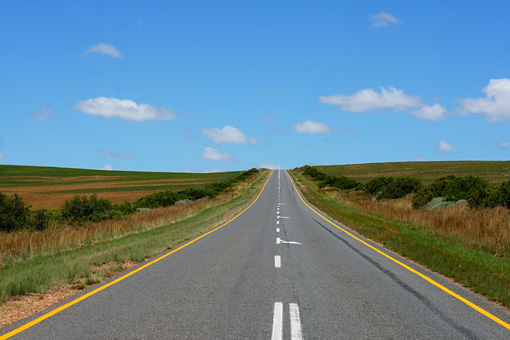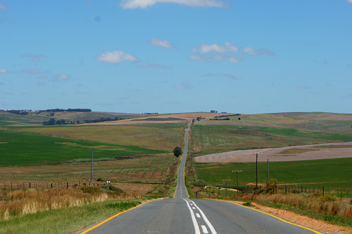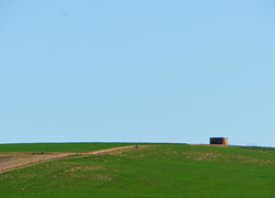 道路沿いの防風林の中へ入り、森を抜けると地平が続く丘へと出ました。