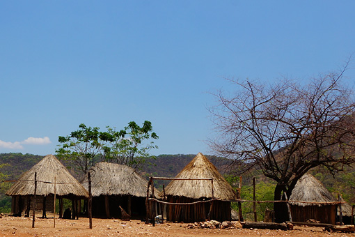 帽子のような形をした茅葺き作りの伝統住宅がよく見られます。