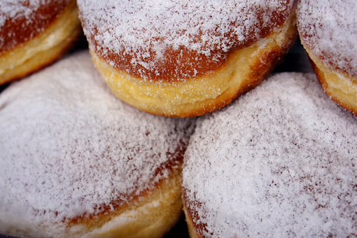 粉砂糖をたっぷりまぶした揚げパンのようなものが売っていますが、