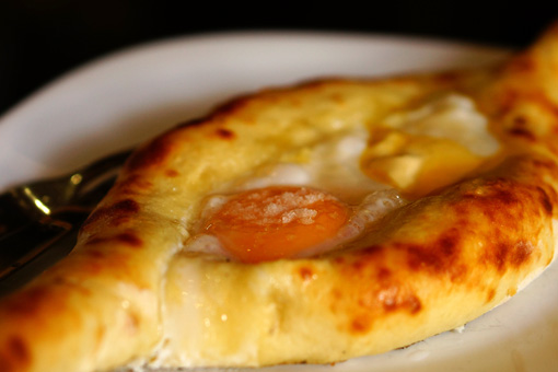 チーズ入りパンのハチャプリの上に卵とバターを乗せたアジャリア風は、