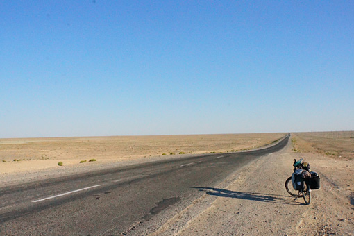 アクタウから300km走ると、そのアスファルトも終わり、