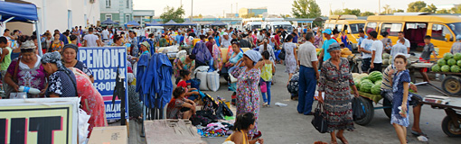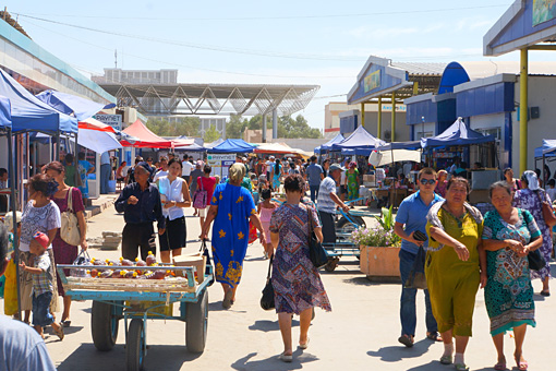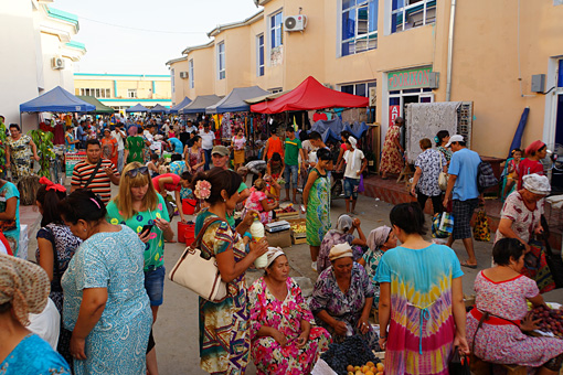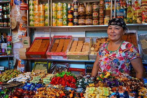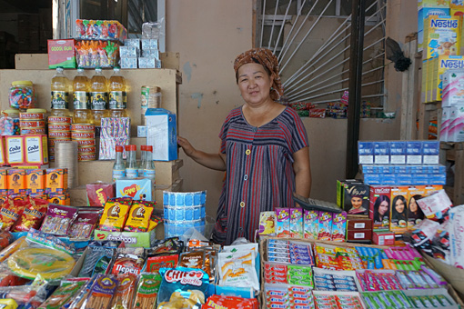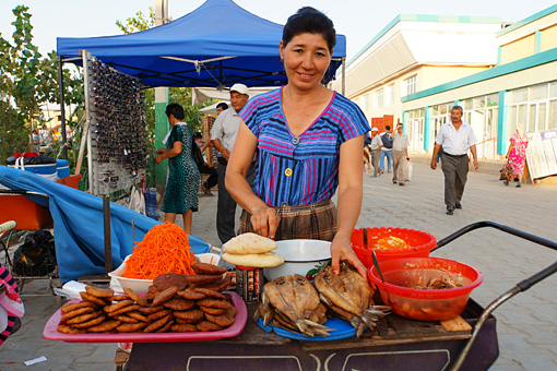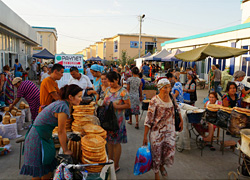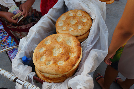 今度は中央アジアの主食、ナンやお惣菜売りのおばさんたちがメイン通りに現れます。