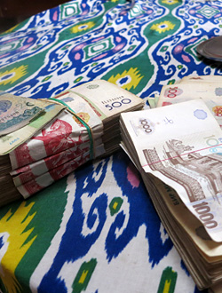 ウズベキスタンはインフレ率が高く、出回っている一般的な紙幣が