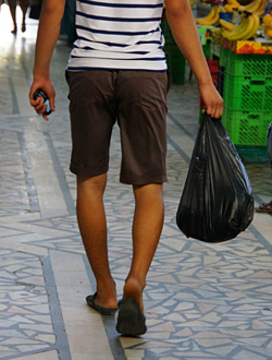 バザールでは人々が黒いビニール袋を手提げにして歩く人々を見かけますが、