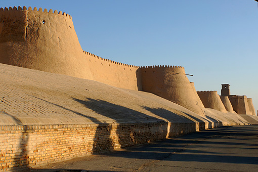 そして最後の仕上げとばかりに壮大な城壁で囲まれたヒヴァの旧市街が現れるのだから、