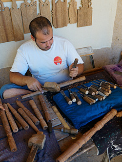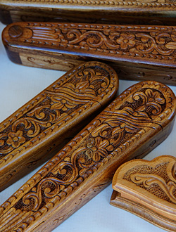 このあたりの名産であるまな板や本立てに彫刻を施していました。