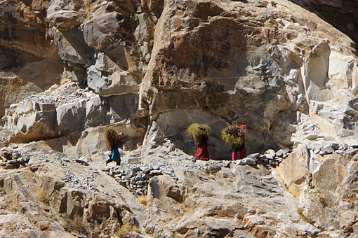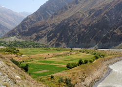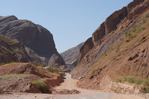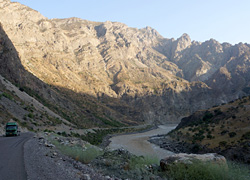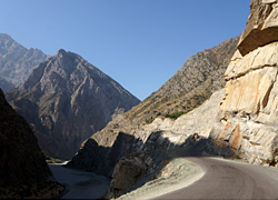 渓谷に沿って延びる道も、悪いながら車の通れる道の存在するタジク側と違って、