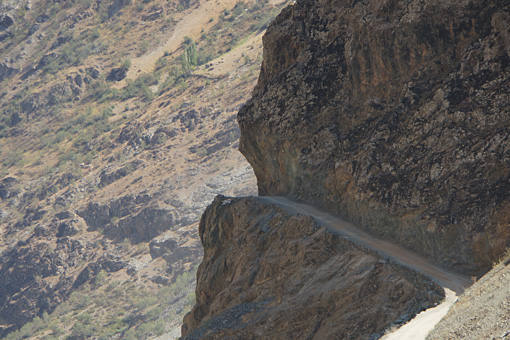 アフガン側は文字通り断崖絶壁にか細いがふらふらと引かれているのみです。