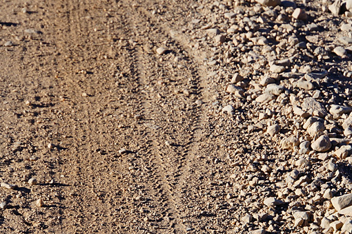 そんな道をよく見れば、ここを通ったチャリダーのタイヤの轍があるではないですか。