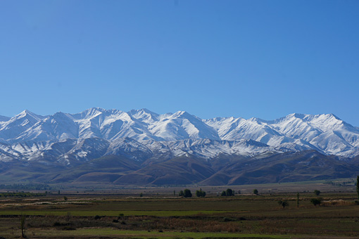 よく晴れた日には、僕が越えてきた天山山脈の眺めが素晴らしく、