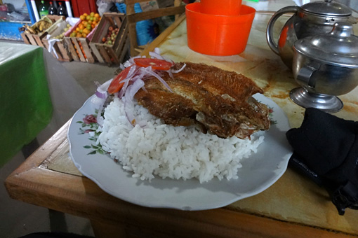一日を締めくくる寝床が見つかって、食堂で現地メシをかきこめば、