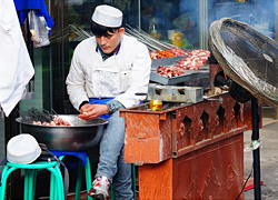 屋台では串焼きのケバブからウマそうな煙が立ち上り、