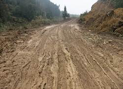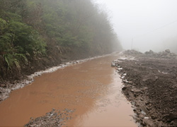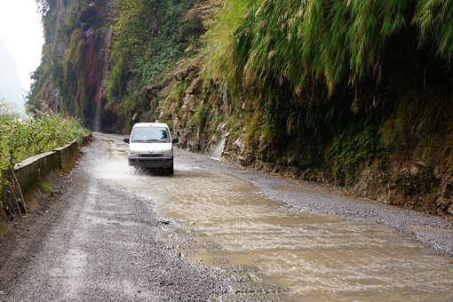 全く手入れのされていない道路は、路面がガタついて所々がけ崩れで道が消失し、