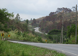起伏の全くない退屈なシャム平原を突っ切り、タイ最北部まで続いています。