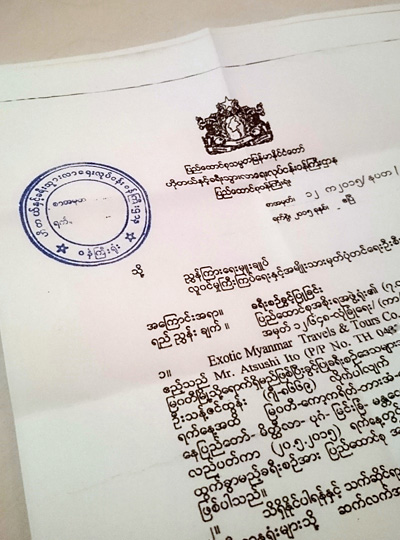 だからヤンゴンで、国境越えのための許可書を受け取って