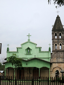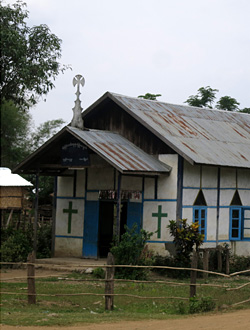 豪奢なパゴダと違って教会は木造やレンガ造りの建物に簡素な十字架が