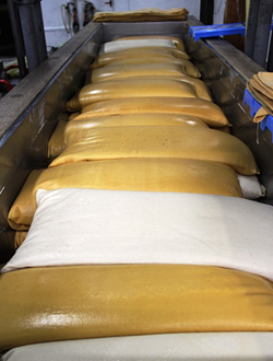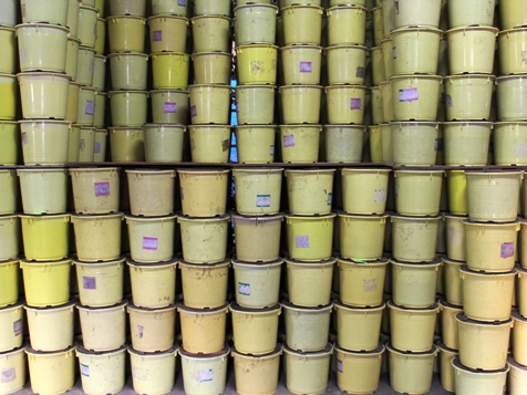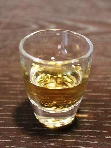 右は1年熟成させ搾り、加熱していないもの。左はそれを加熱したもの。