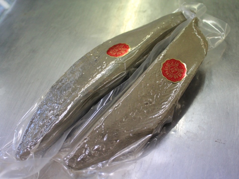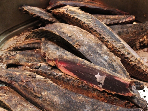 これは、くじらのお肉をタレに漬込んで、天日で干したもの。